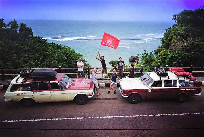 Экспедиция Восход из Москвы на советских «Волгах» финиширует на Бали