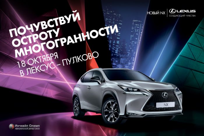 18 октября 2014 года в «Lexus Пулково» состоится премьера нового Lexus NX – первой модели Lexus в сегменте премиальных компактных кроссоверов.