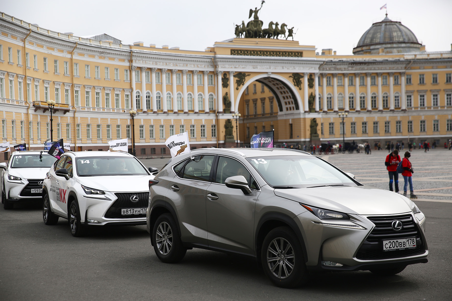 На Дворцовой площади, участники смогли применить свои навыки мастерской парковки и маневрирования, выстраивая из своих автомобилей аббревиатуру NX, которую запечатлели на память с воздуха с помощью квадрокоптера.