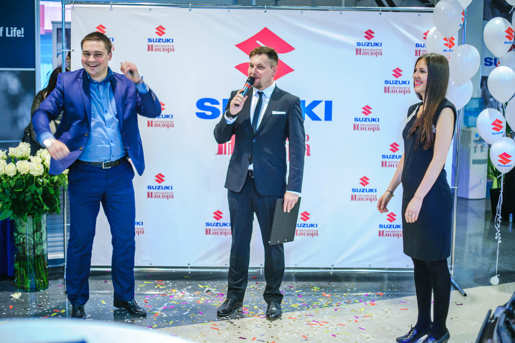 Перед торжественной частью состоялась пресс-конференция для представителей СМИ. В числе спикеров был новый генеральный директор «Сузуки Мотор Рус» Кеичи Сумида и директор по продажам автоцентра «Пандора» Олег Шеховцов.